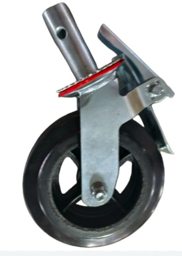 / RODAJA ANDAMIO 8X2″ PLACA GIRATORIA CON FRENO HULE NEGRO CARGA: 500KG.