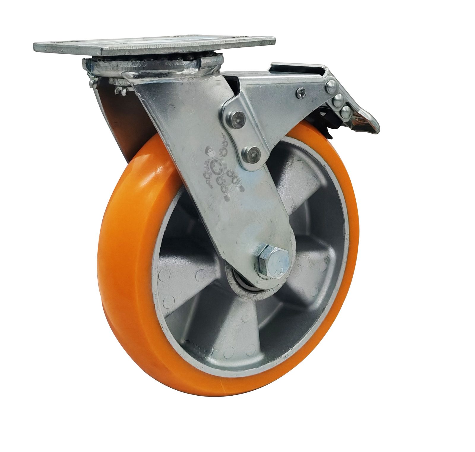 RODAJA IND 4X2″ PLACA GIRATORIA CON FRENO POLIURETANO ALUMINIO CARGA: 350KG.