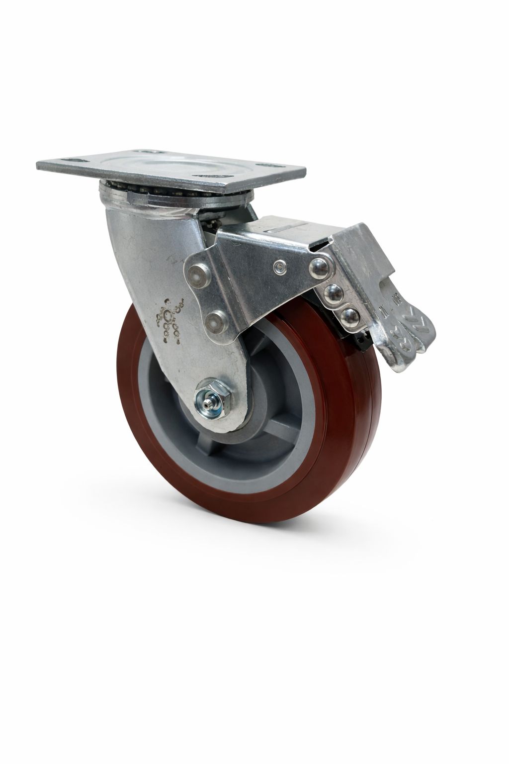 RODAJA IND 5X2″ PLACA GIRATORIA Y FRENO TOTAL POLIURETANO CARGA: 340KG.