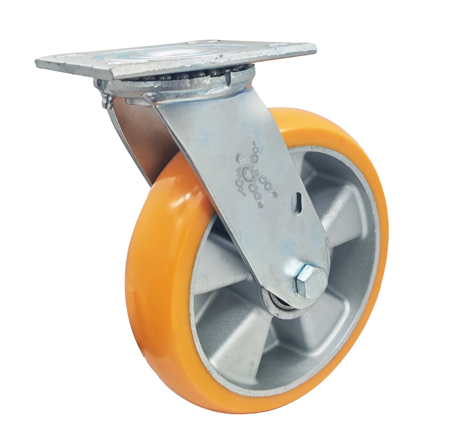 / RODAJA IND 8X2″ PLACA GIRATORIA POLIURETANO ALUMINIO CARGA: 500KG.